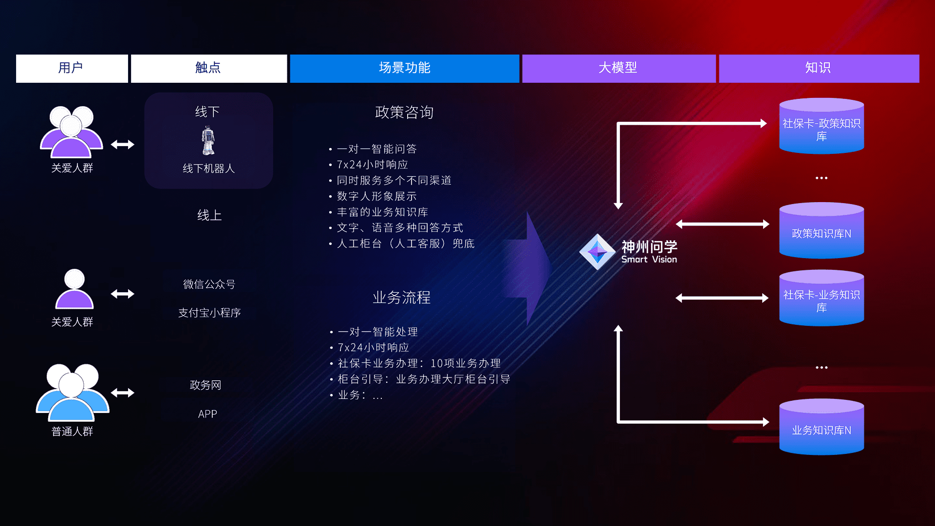 • 线上线下全覆盖:线上提供微信公众号、、、支付宝小程序、、、政务网、、、app多种渠道,,与线下机器人形成完整服务体系。。
